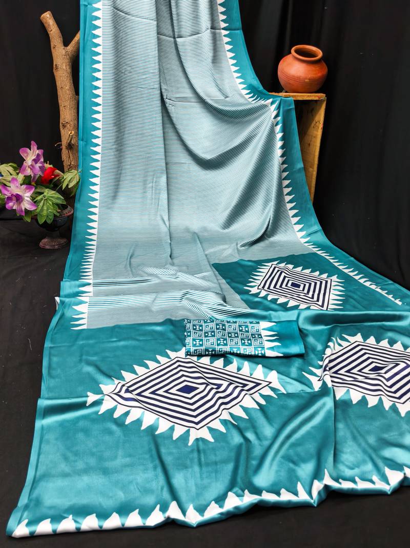 | Product Name | Blue Printed Satin Saree With Blouse Piece | |
