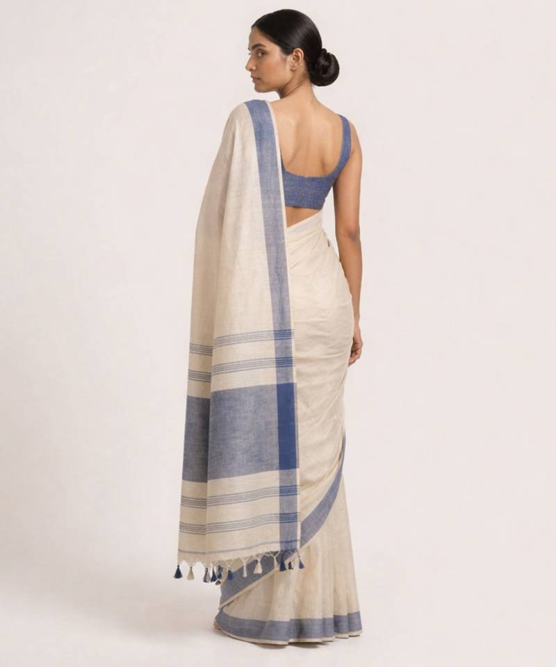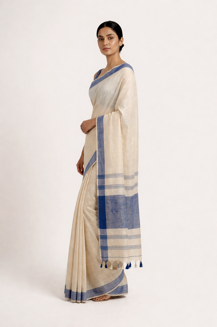 Elegant Linen Cotton Silk Woven Saree Crafted With Jacquard Weaving Design. Saree Comes With Unstitched Linen Silk Blouse Piece. Note: Please Refer Real Image Attached