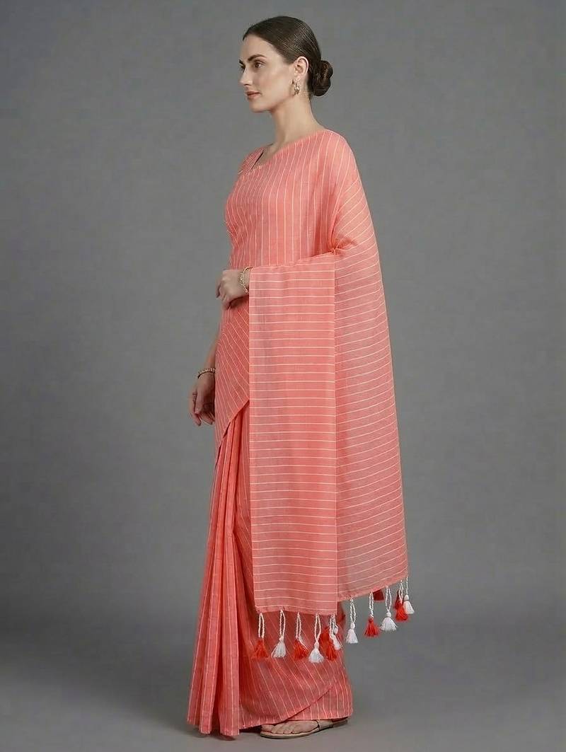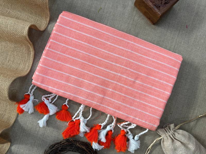 | • | Saree | : | Color- Peach / Fabric- Khadi |