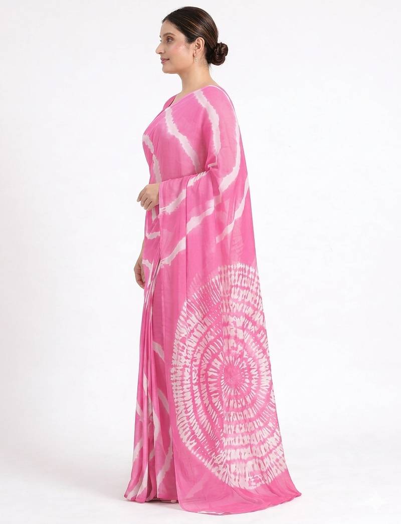 | Product Description | Elegant Chinon Leheriya Saree Crafted With Shibori Pattern. Saree Comes With Unstitched Chinon Blouse Piece. Note: Please Refer Real Image Attached |