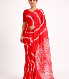 Red printed art silk saree with blouse piece