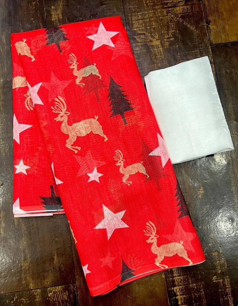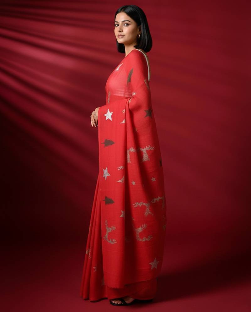 | Product Description | Elegant Linen Woven Saree Crafted With Xmas Print. Saree Comes With Unstitched Linen Printed Blouse Piece. Note: Please Refer Real Image Attached |