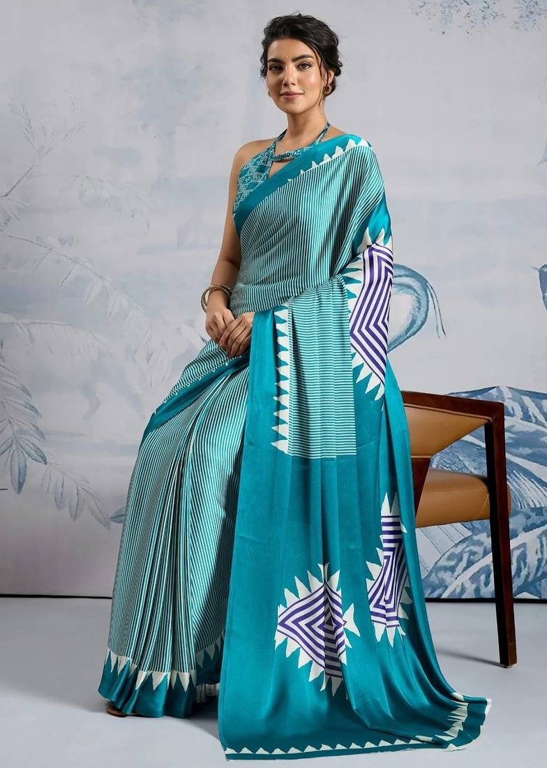 | Product Name | Turquoise Printed Satin Saree With Blouse Piece | |