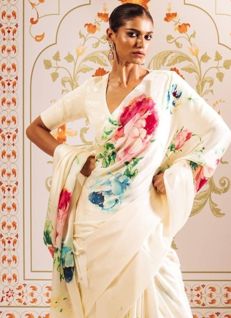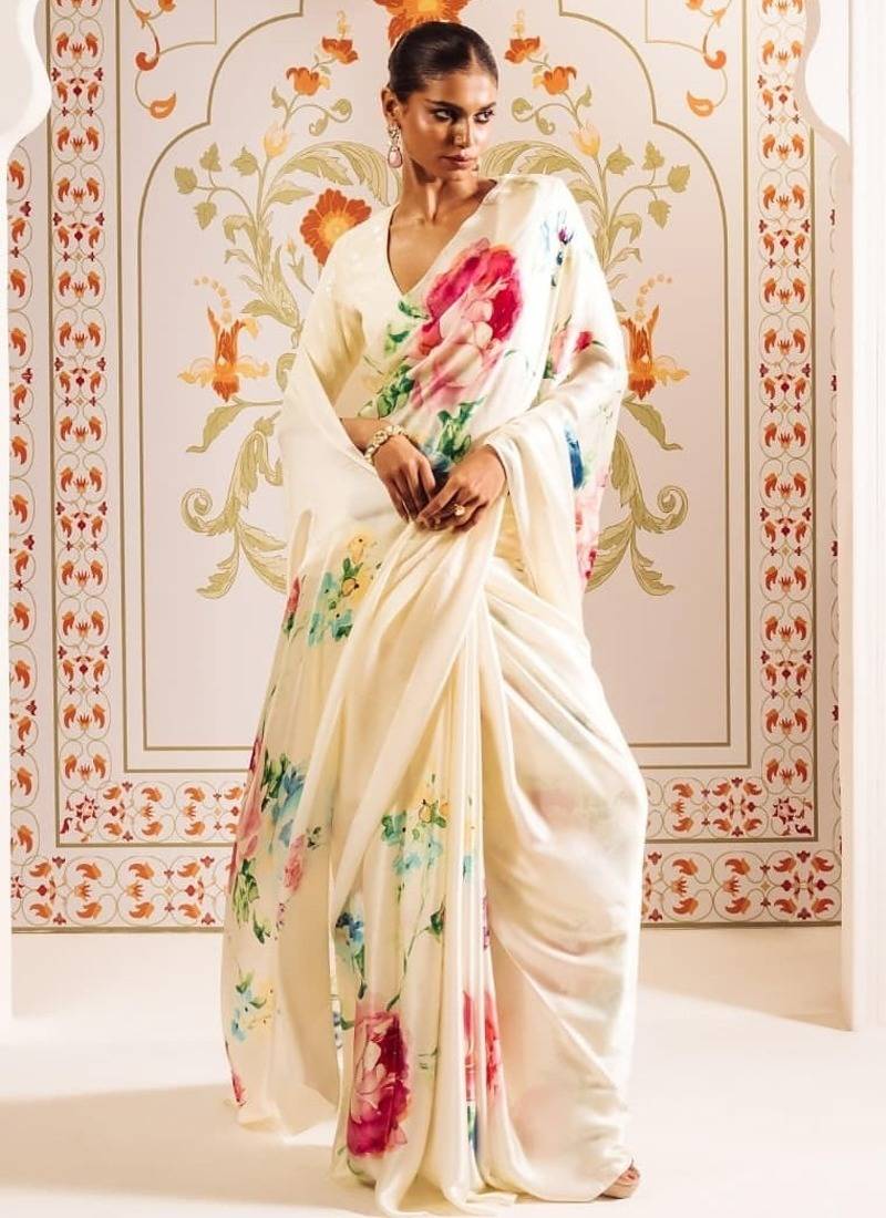 | Product Name | White Printed Satin Saree With Blouse Piece | |