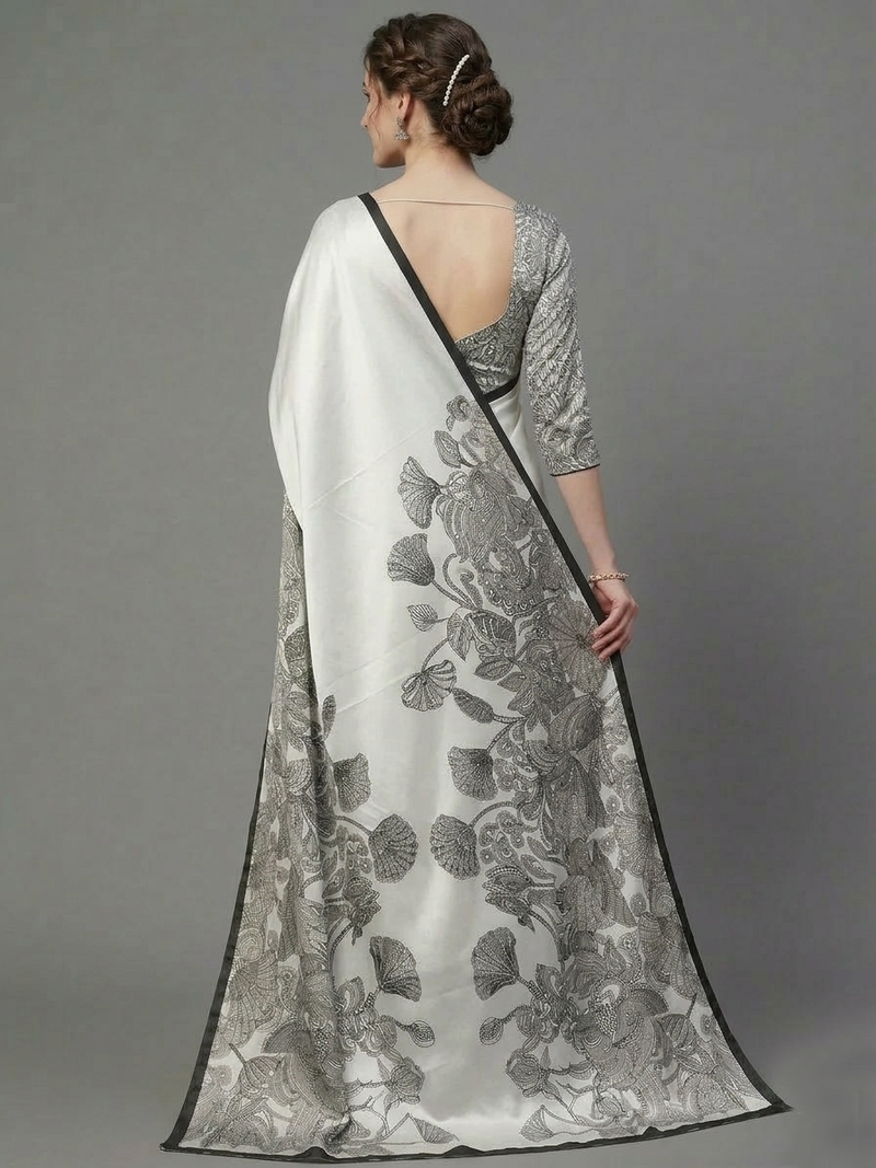 | Product Name | White Printed Satin Saree With Blouse Piece | |