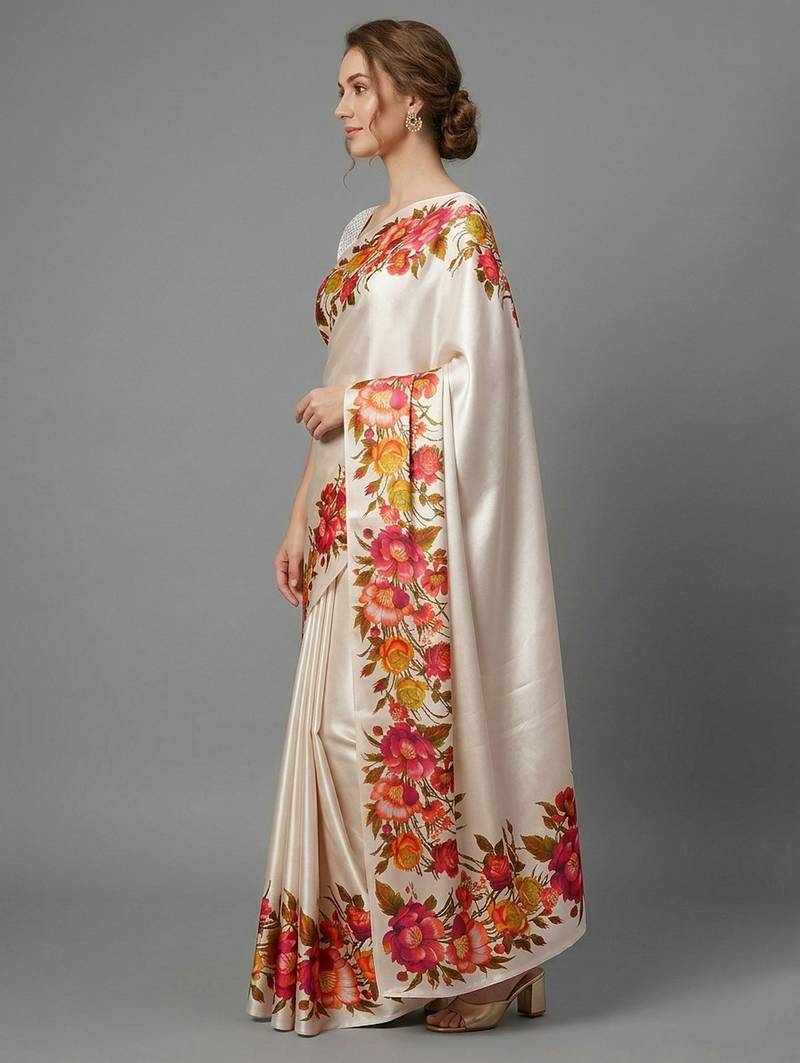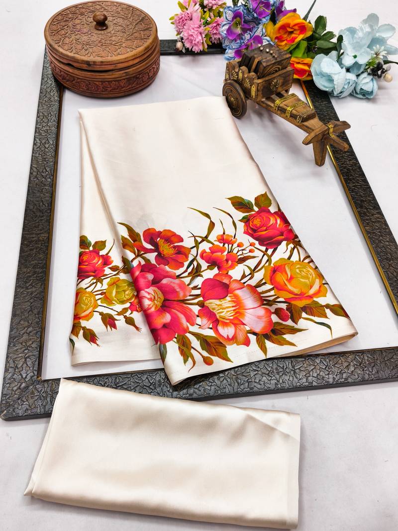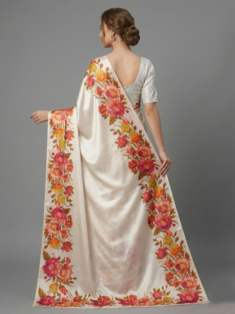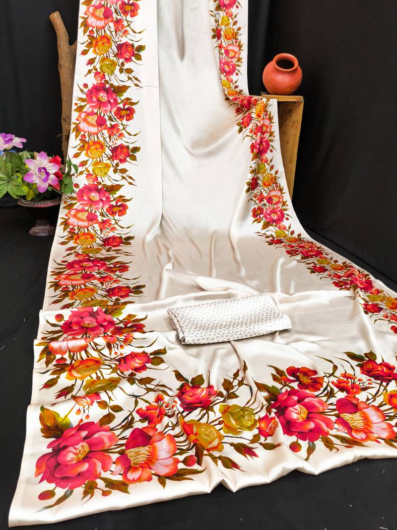 | Product Name | White Printed Satin Saree With Blouse Piece | |