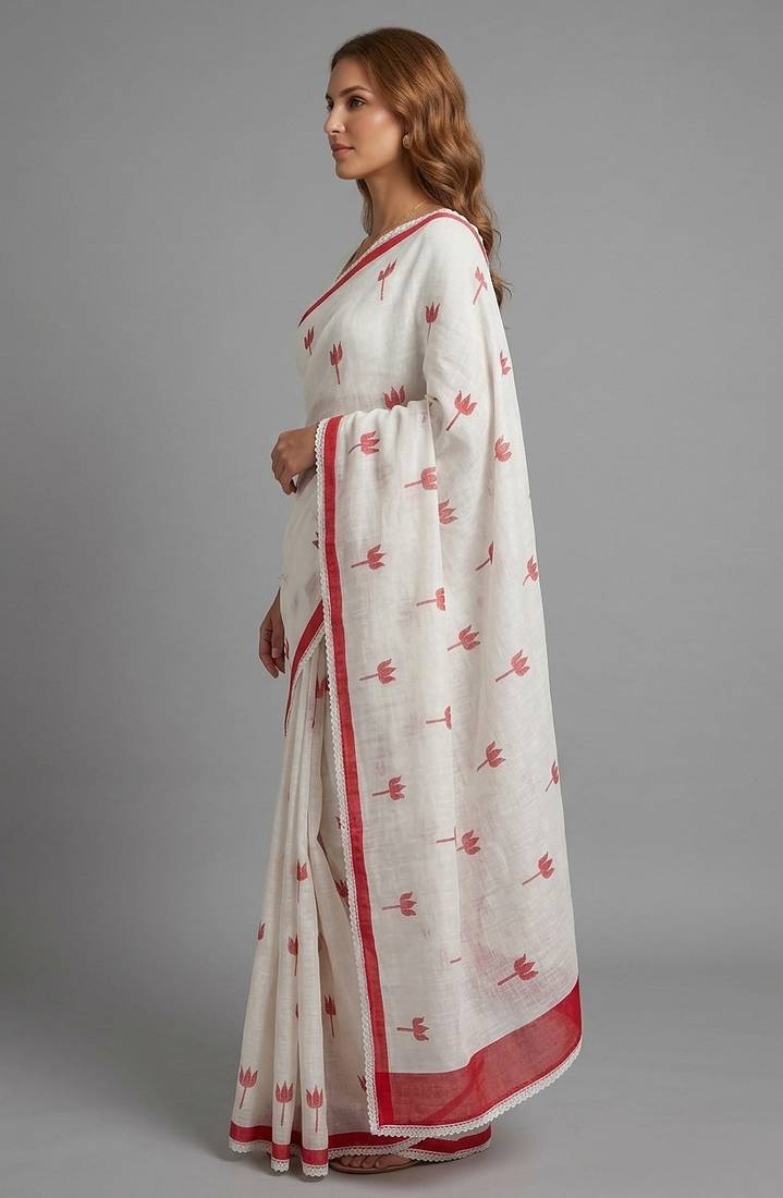 | Product Name | White Woven Linen Saree With Blouse Piece | |