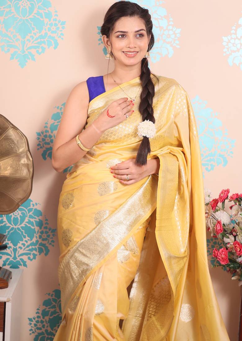 | Product Name | Yellow Woven Banarasi Silk Blend Saree With Blouse | |