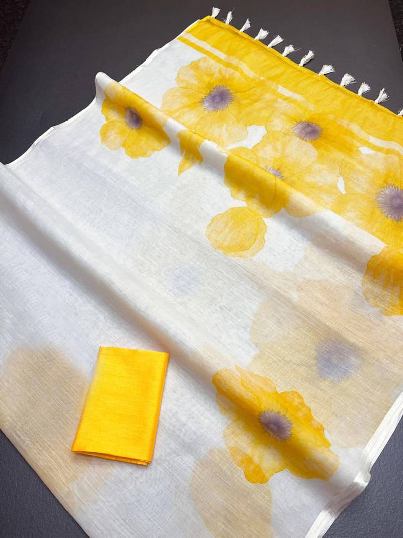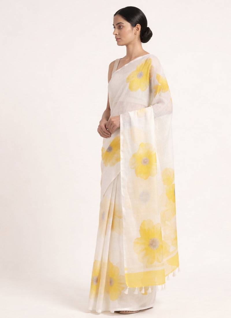 | Product Description | Elegant Linen Woven Saree Crafted With Floral Print. Saree Comes With Unstitched Linen Printed Blouse Piece. Note: Please Refer Real Image Attached |