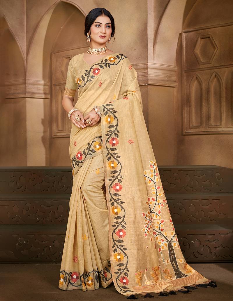 | Product Name | Beige Cottan Silk Blend With Meena Woven Work Traditional Saree | |