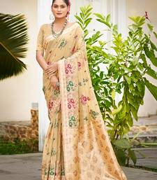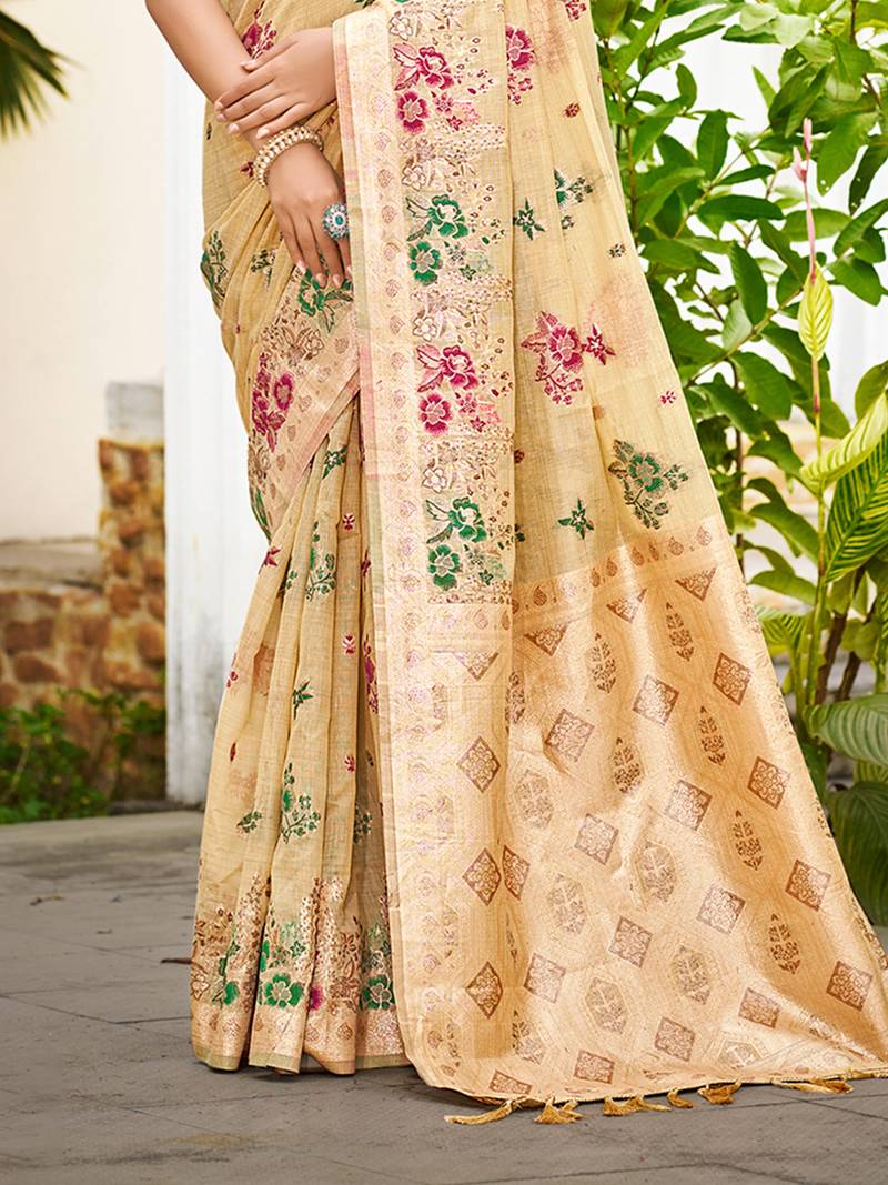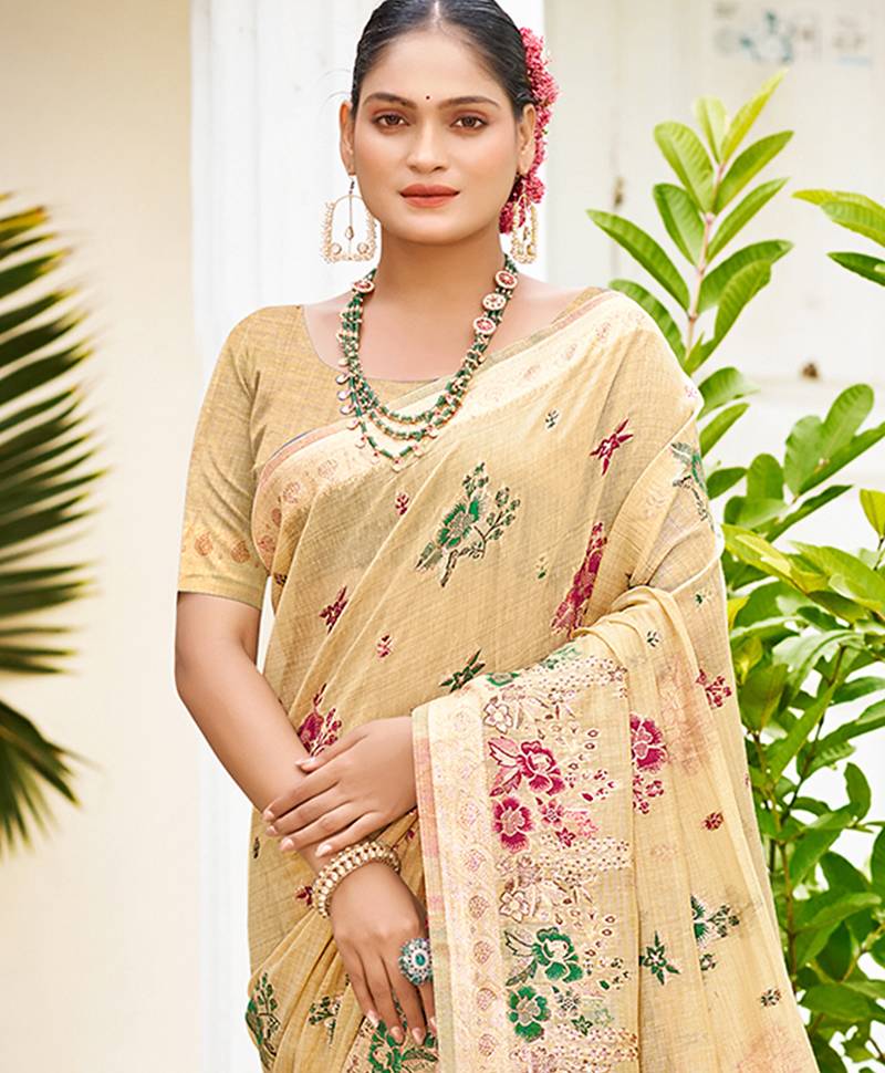 Product Name Beige Cottan Silk Blend With Meena Woven Work Traditional Saree