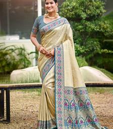 Border blue with sari cream silk blend woven work traditional saree