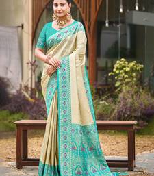 Product Name Border Turquoise With Sari Cream Silk Blend Woven Work Traditional Saree