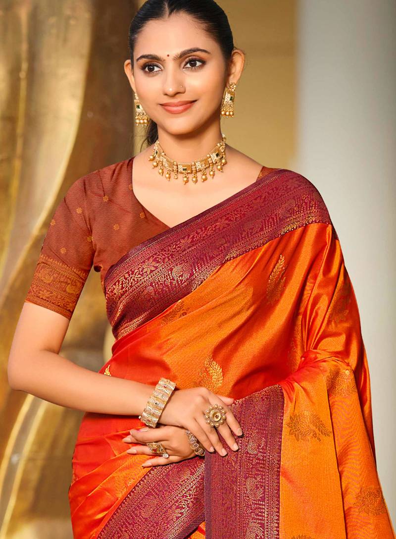 | Product Name | Bright Orange Soft Silk Woven Work Traditional Saree | |