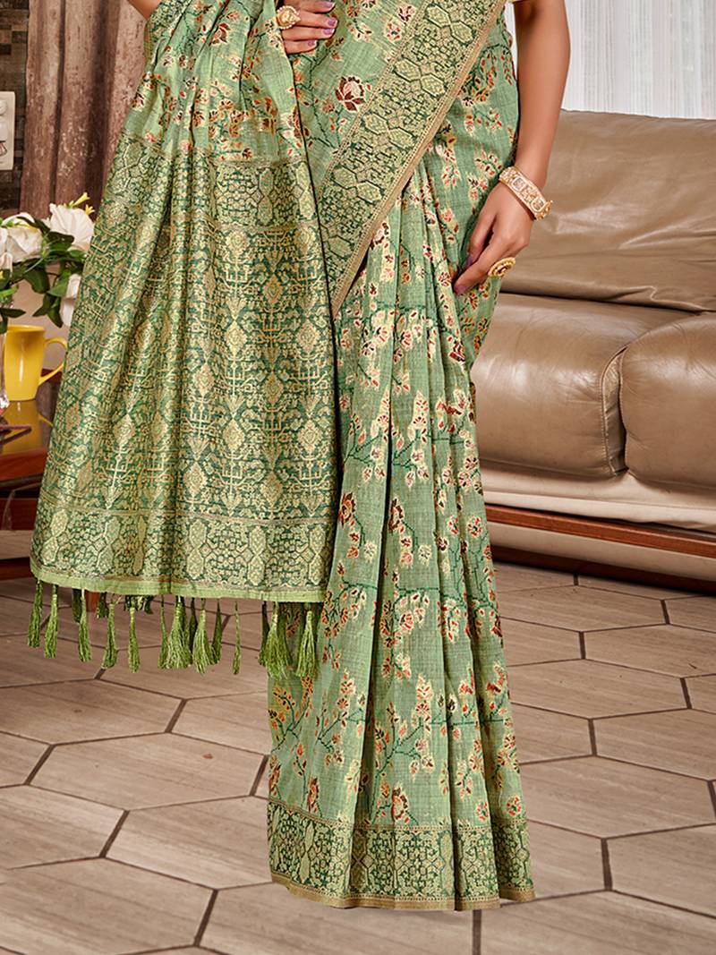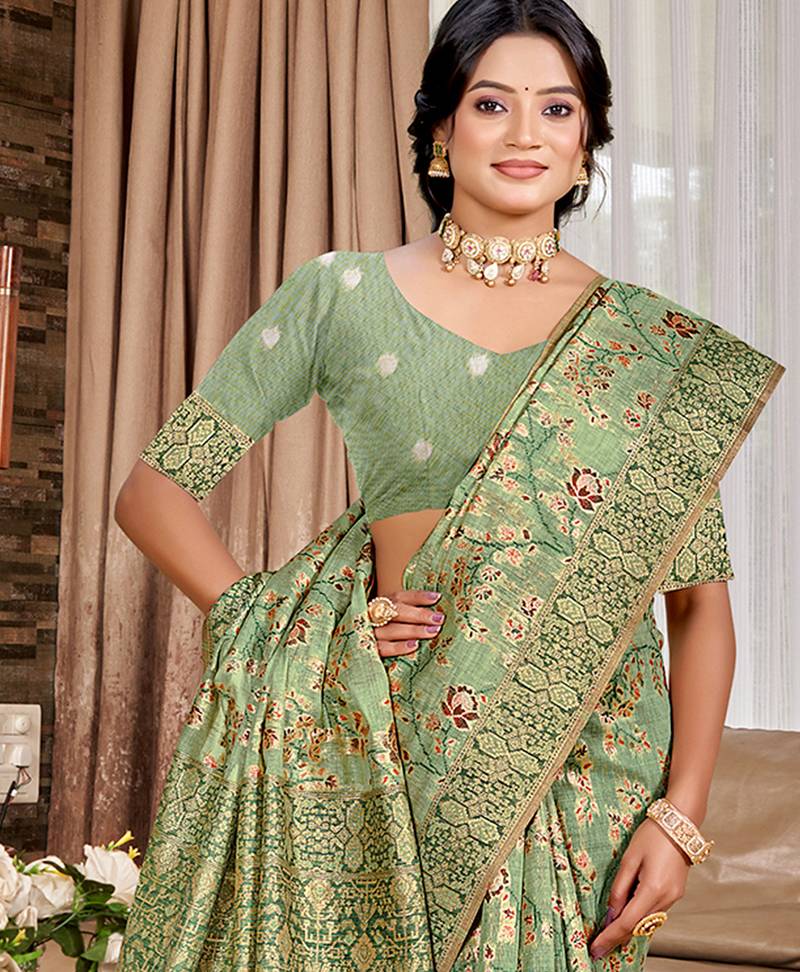 | Product Name | Green Cottan Silk Blend With Meena Woven Work Traditional Saree | |