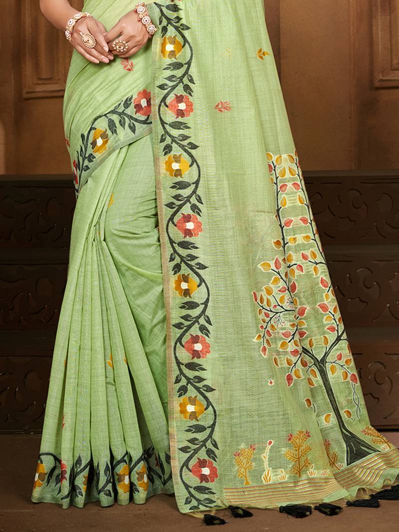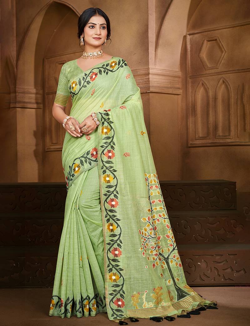 | Product Name | Green Cottan Silk Blend With Meena Woven Work Traditional Saree | |