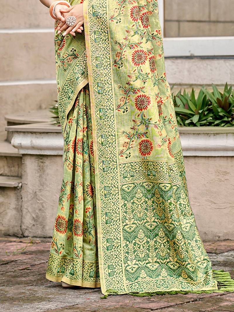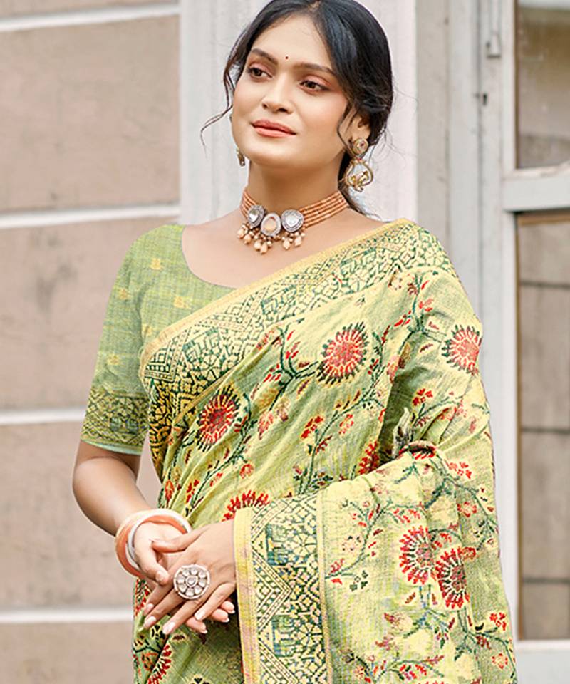Saree : Color- Light Green / Fabric- Silk Cotton