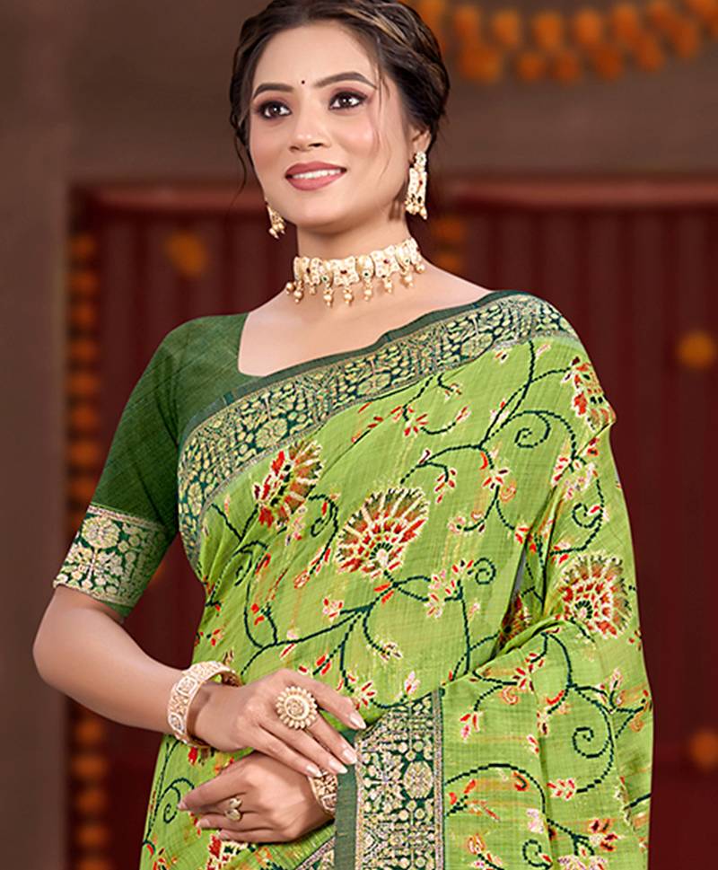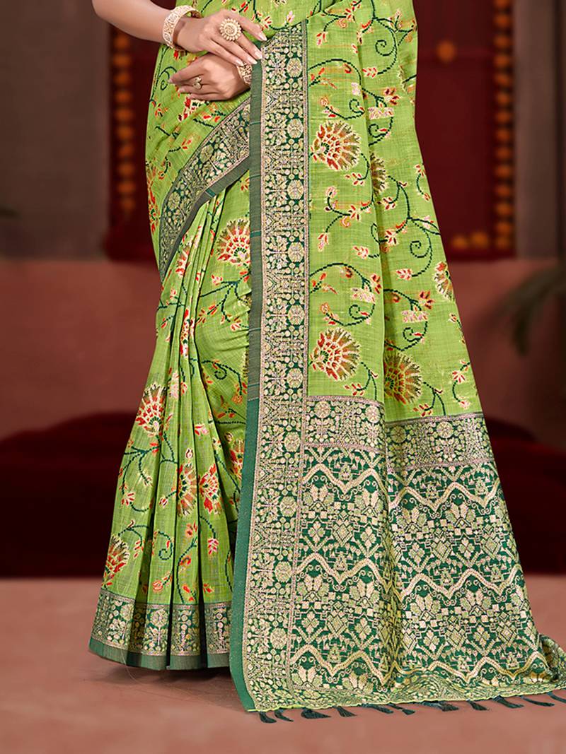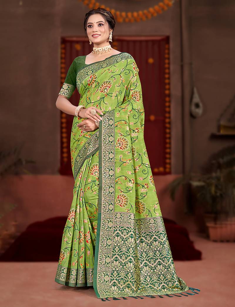 | Product Name | Green Cottan Silk Blend With Meena Woven Work Traditional Saree | |