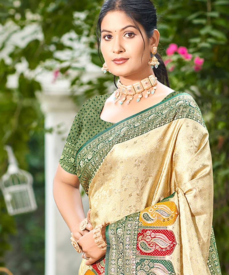 Product Name Green Silk Blend Woven Work Traditional Saree