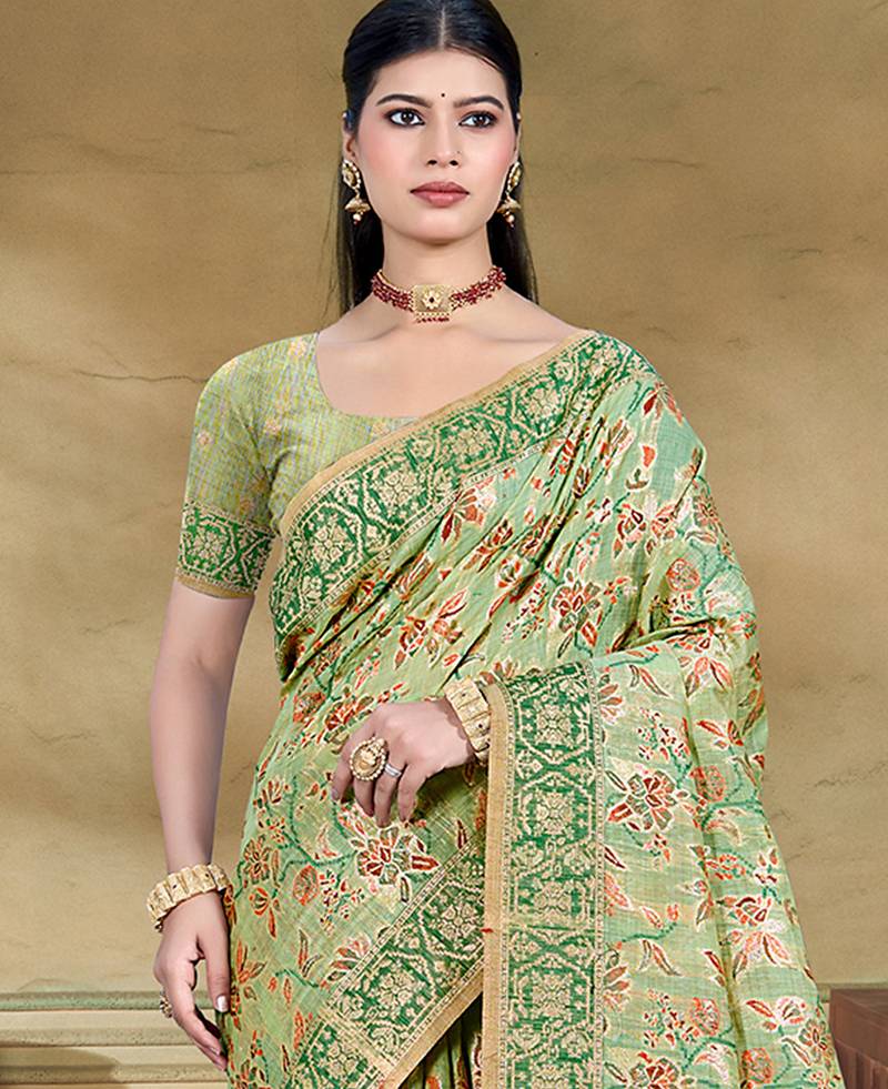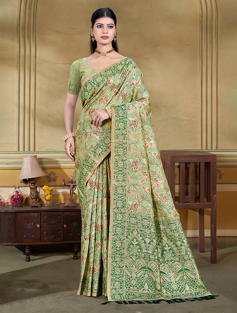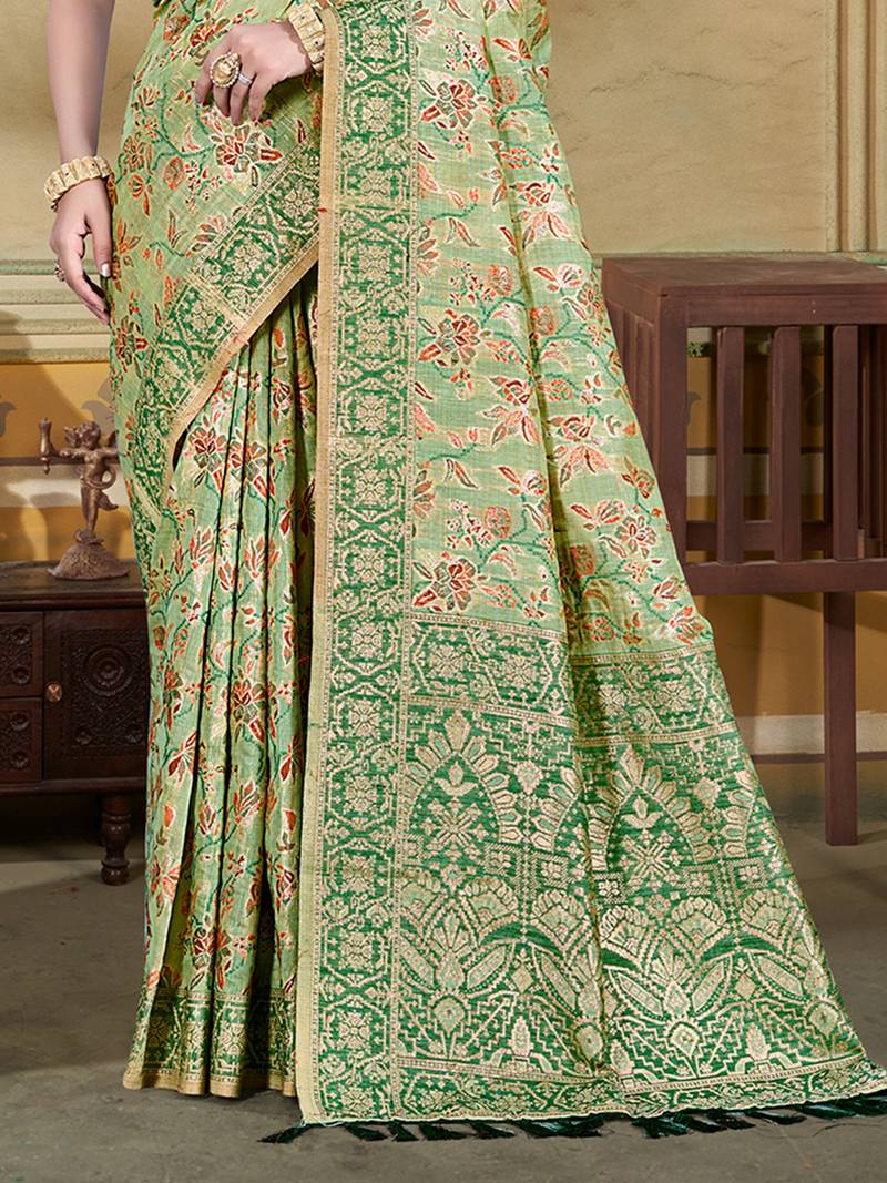 | Product Name | Light Green Cottan Silk Blend With Meena Woven Work Traditional Saree | |