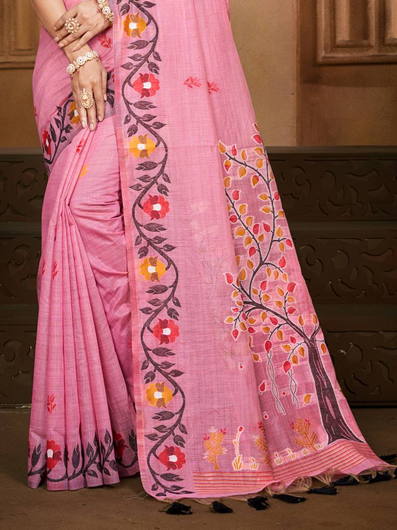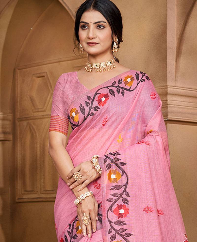 | Product Name | Light Pink Cottan Silk Blend With Meena Woven Work Traditional Saree | |