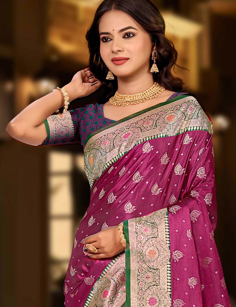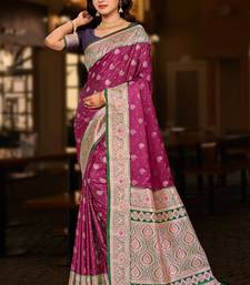 Light plum silk blend woven work traditional saree