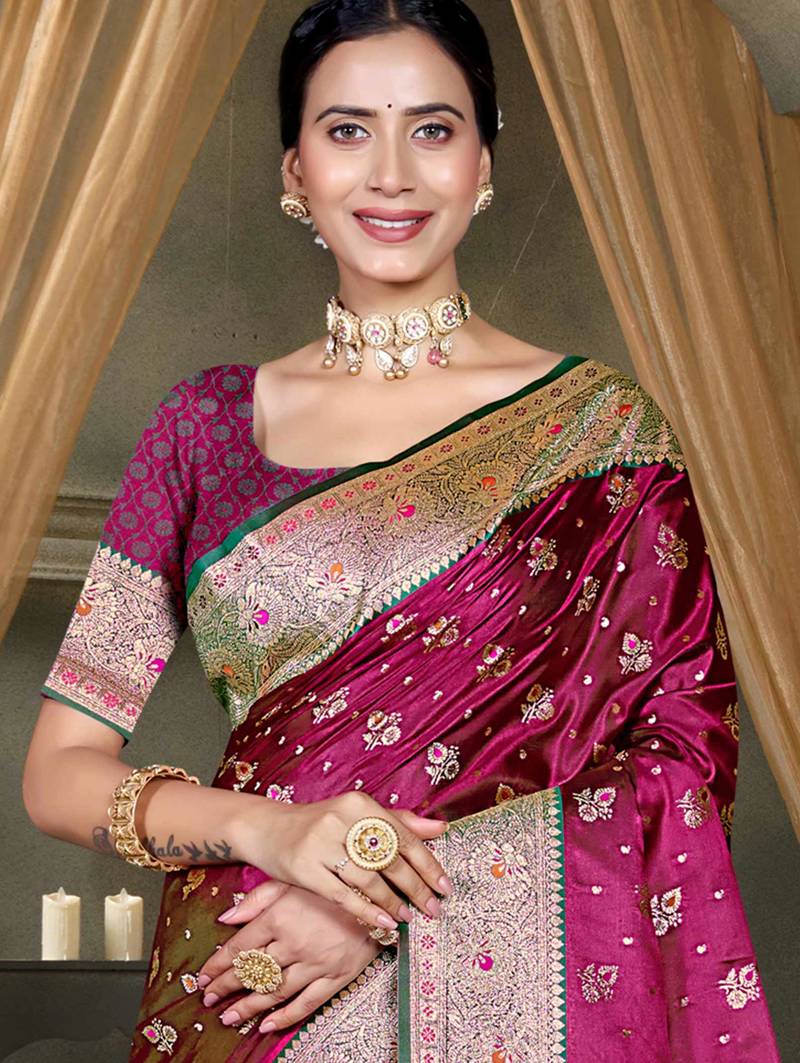 | • | Saree | : | Color- Light Plum / Fabric- Silk Blend |