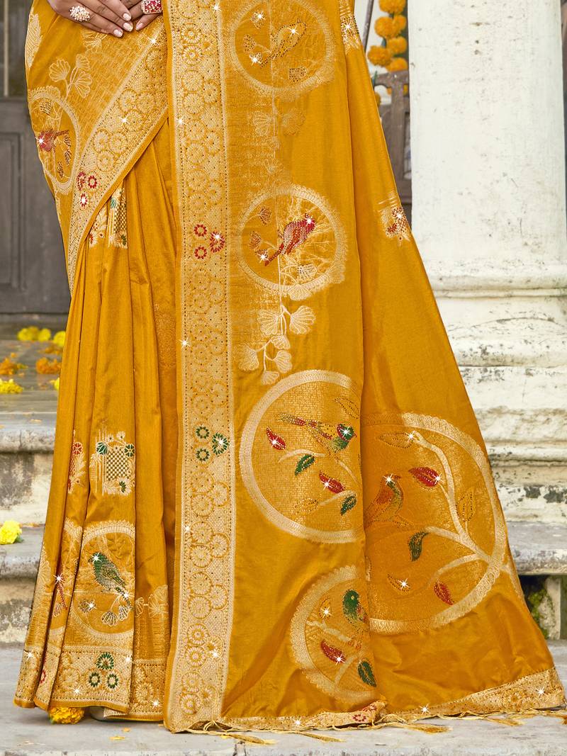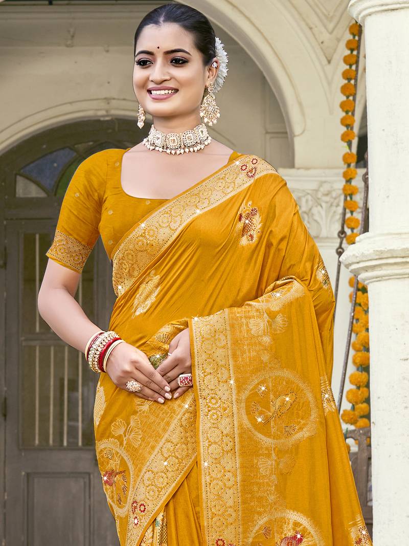 | Product Name | Sangam Prints Mustard Silk Woven Work Festival Saree | |