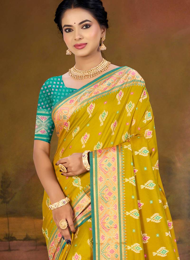Mustard yellow patola silk blend woven work traditional saree