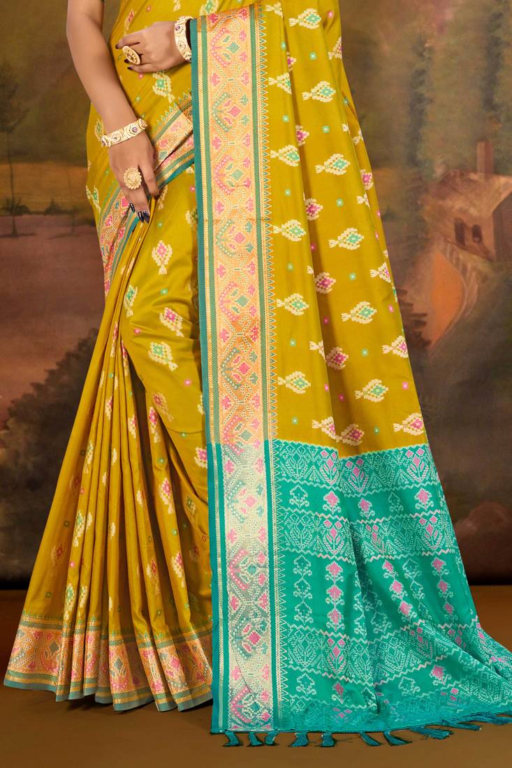 | Product Name | Mustard Yellow Patola Silk Blend Woven Work Traditional Saree | |
