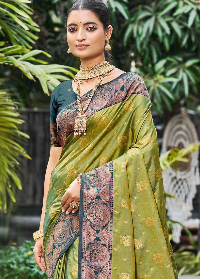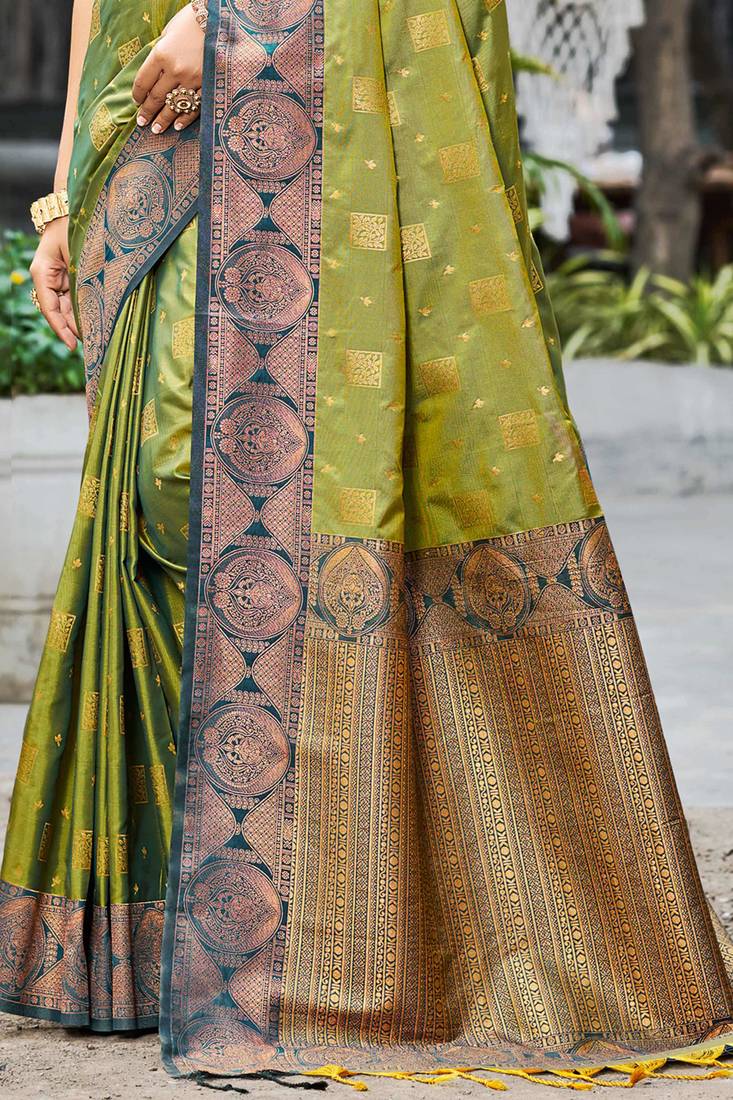 Product Name Olive Green Soft Silk Woven Work Traditional Saree
