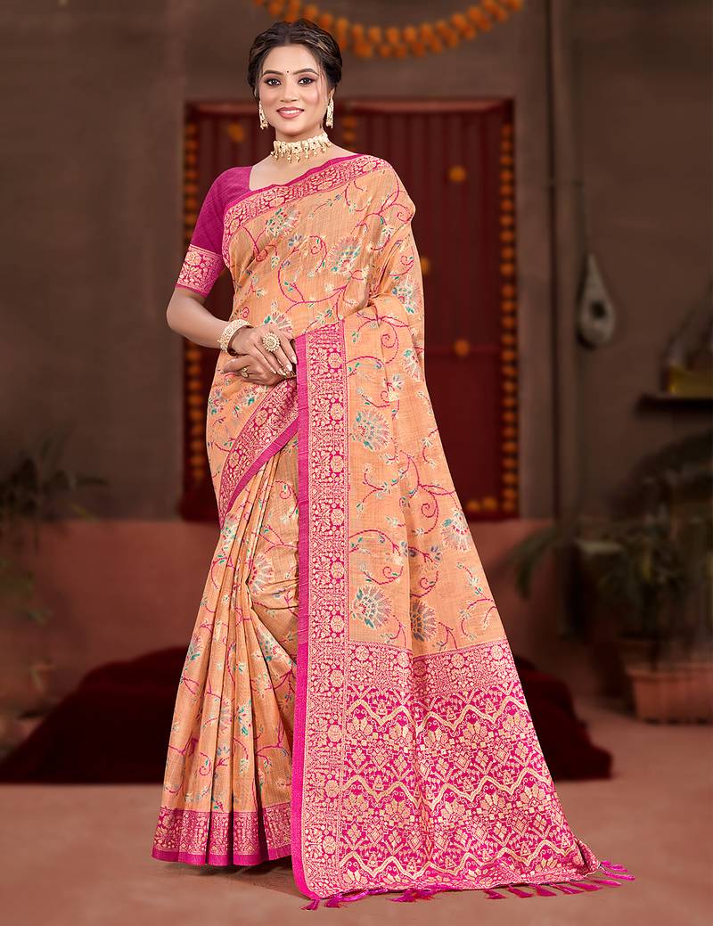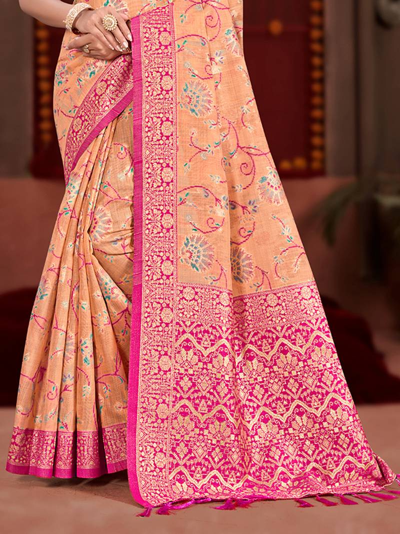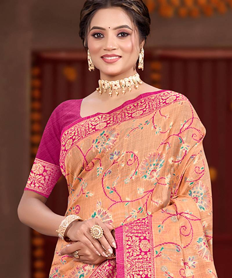 | Product Name | Peach Cottan Silk Blend With Meena Woven Work Traditional Saree | |