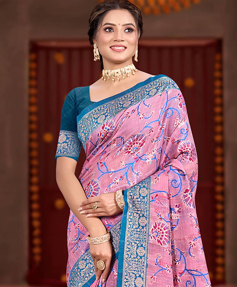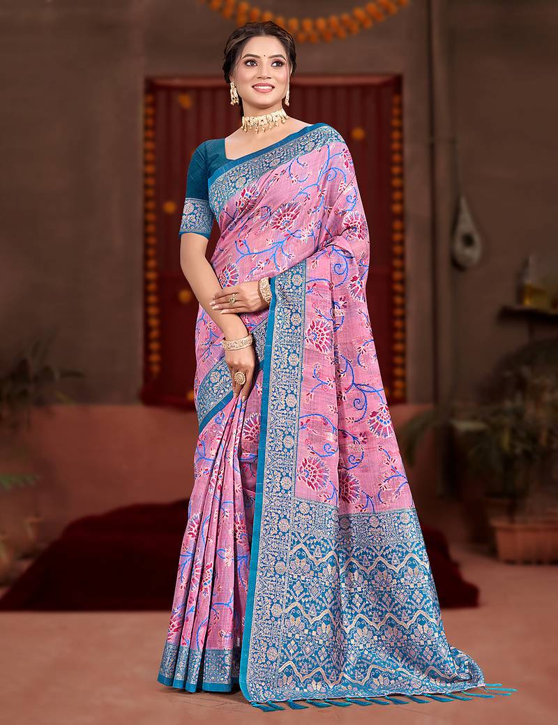 | Product Name | Pink Cottan Silk Blend With Meena Woven Work Traditional Saree | |