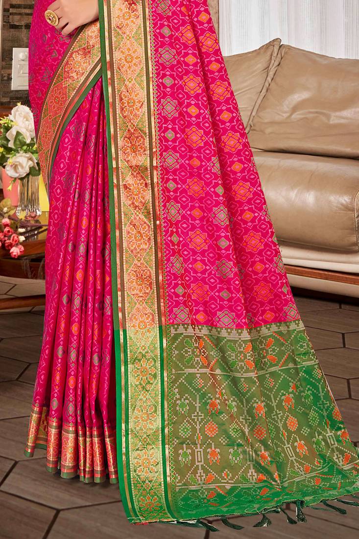 Rani pink patola silk blend woven work traditional saree