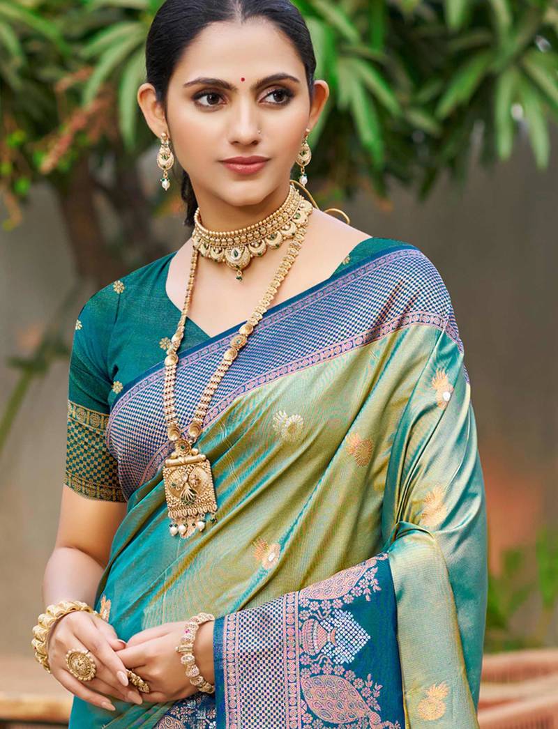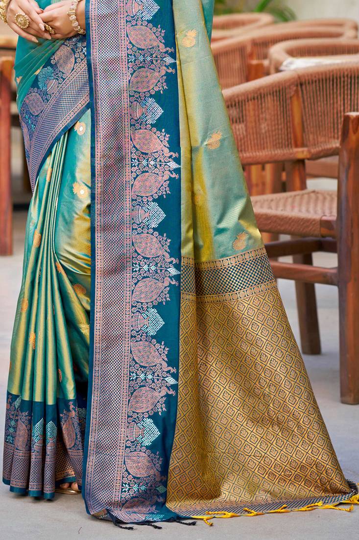 sea green soft silk woven work traditional saree