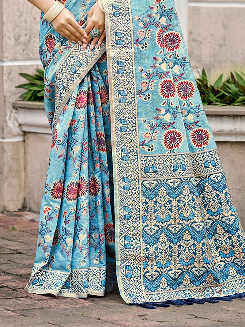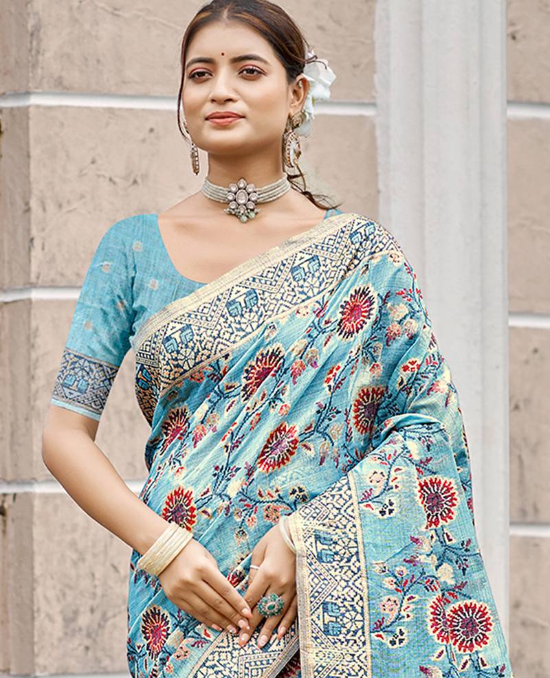 Product Name Sky Blue Cottan Silk Blend With Meena Woven Work Traditional Saree