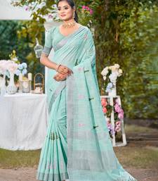 Product Name Sky Blue Linen Woven Work Traditional Saree