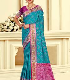 Turquoise blue patola silk blend woven work traditional saree