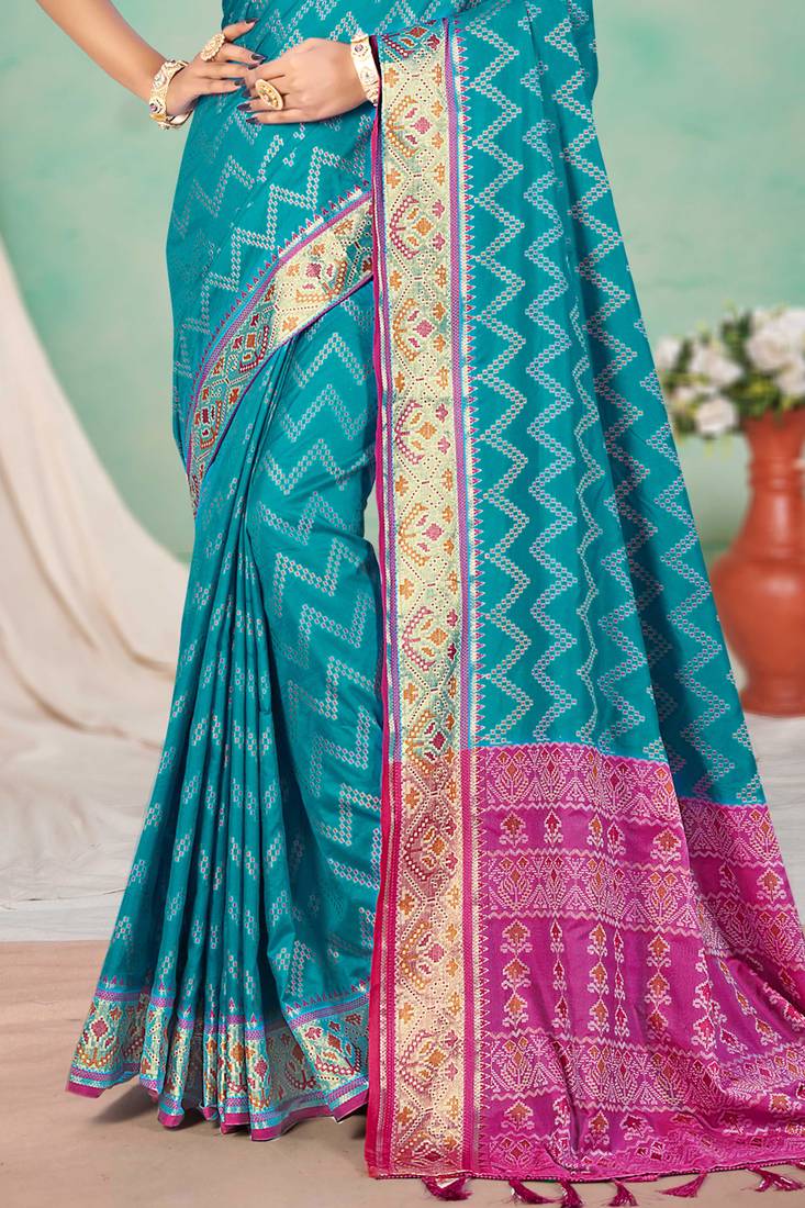 Turquoise blue patola silk blend woven work traditional saree