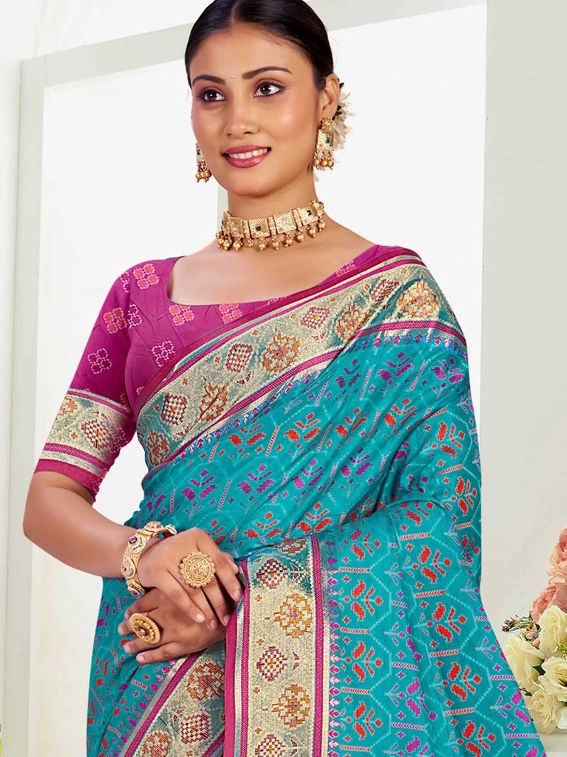 | Product Name | Turquoise Blue Patola Silk Blend Woven Work Traditional Saree | |