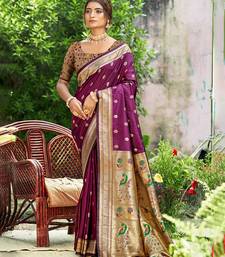 Product Name Wine Silk Blend Woven Work Traditional Saree