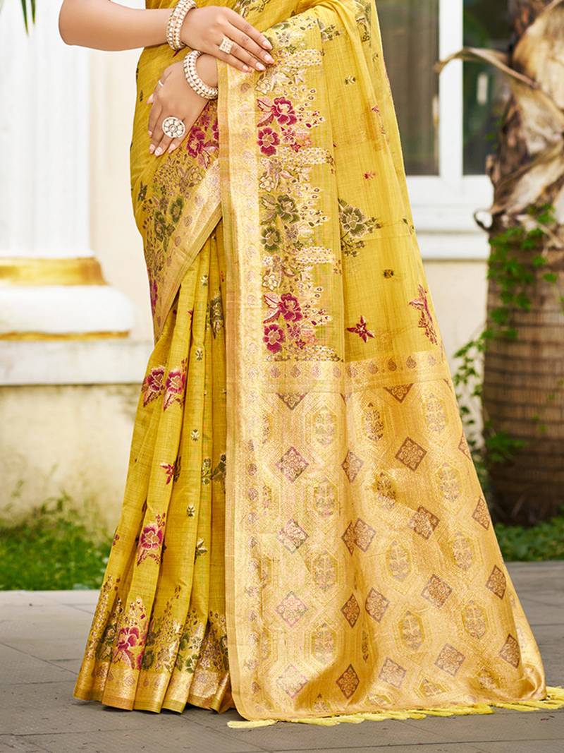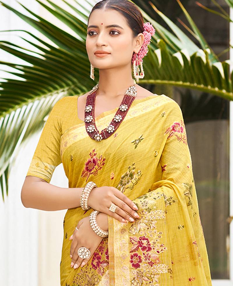 | Product Name | Yellow Cottan Silk Blend With Meena Woven Work Traditional Saree | |