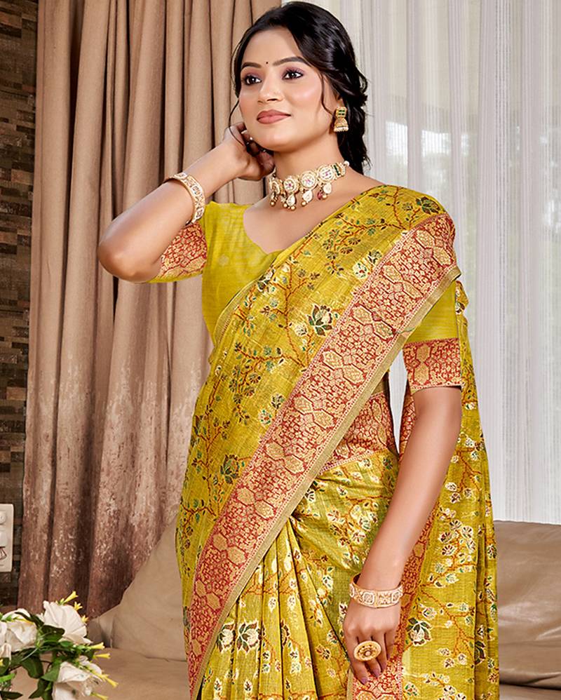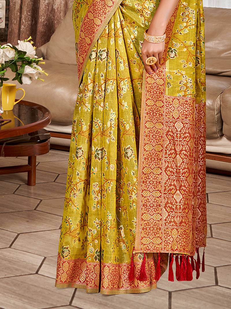 | Product Name | Yellow Cottan Silk Blend With Meena Woven Work Traditional Saree | |