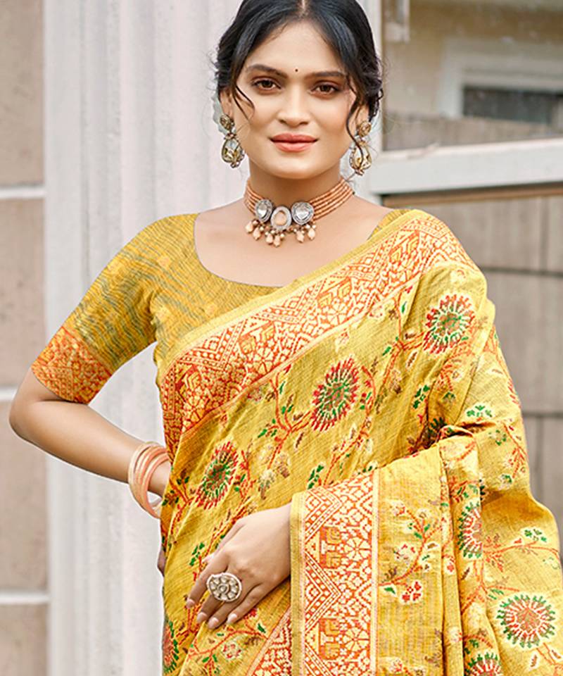 | Product Name | Yellow Cottan Silk Blend With Meena Woven Work Traditional Saree | |