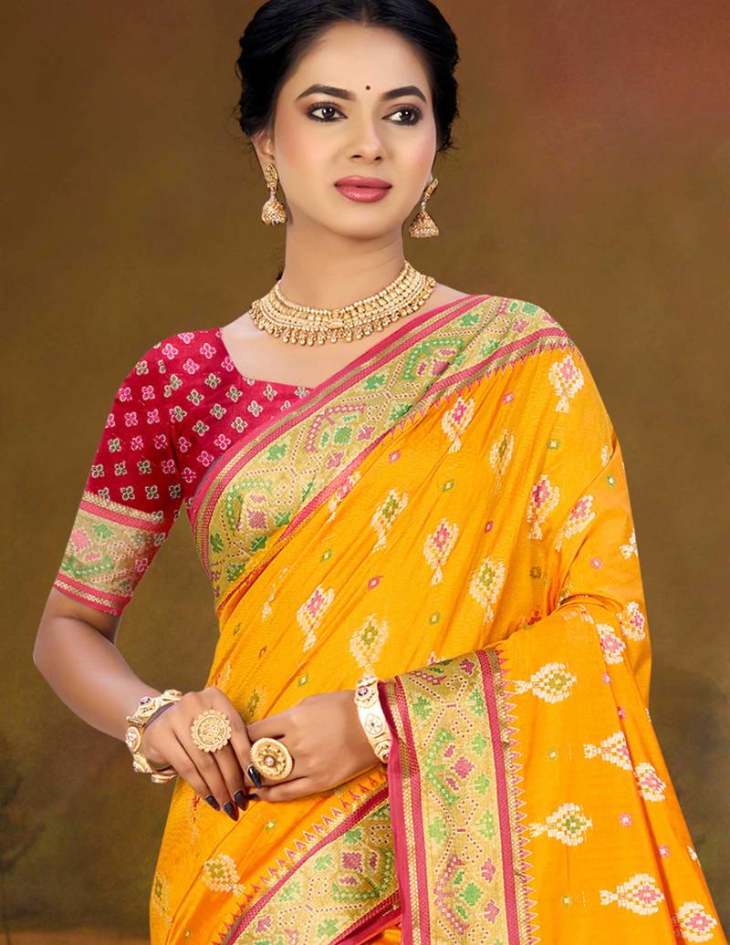 Yellow patola silk blend woven work traditional saree