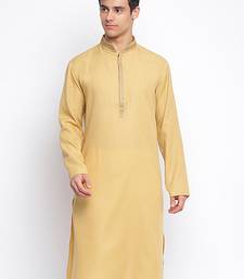 Deep beige plain pattern straight men kurta