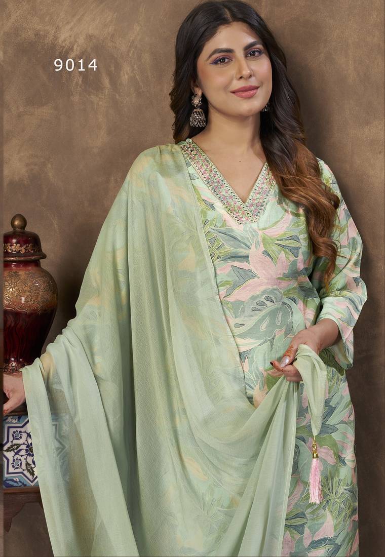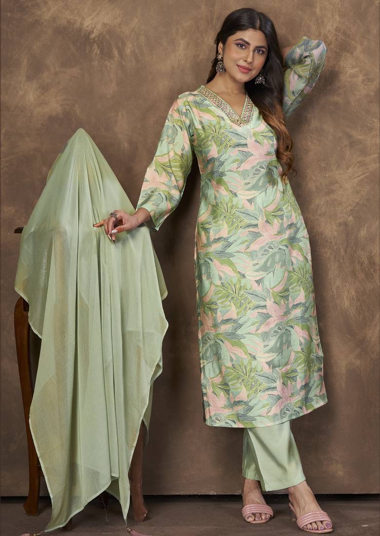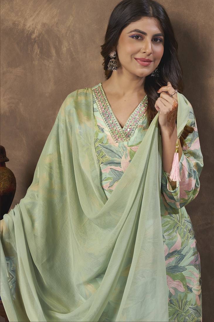 | Product Name | Light Green Digital Printed Premium Chanderi With Handwork Womens Party Wear Kurti Set | |
