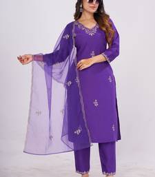 Product Name Purple Cotton Blend With Embrodeiry Work Design Womens Kurti Set