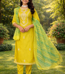 | Product Name | Yellow Cotton Blend With Embroidery Work Design Women Kurti Set | |
