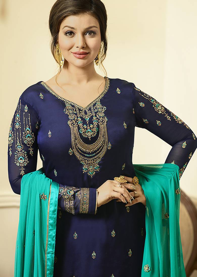 | Product Name | Georgette Sharara In Blue Color With Embroidery And Crystal Stone Work | |